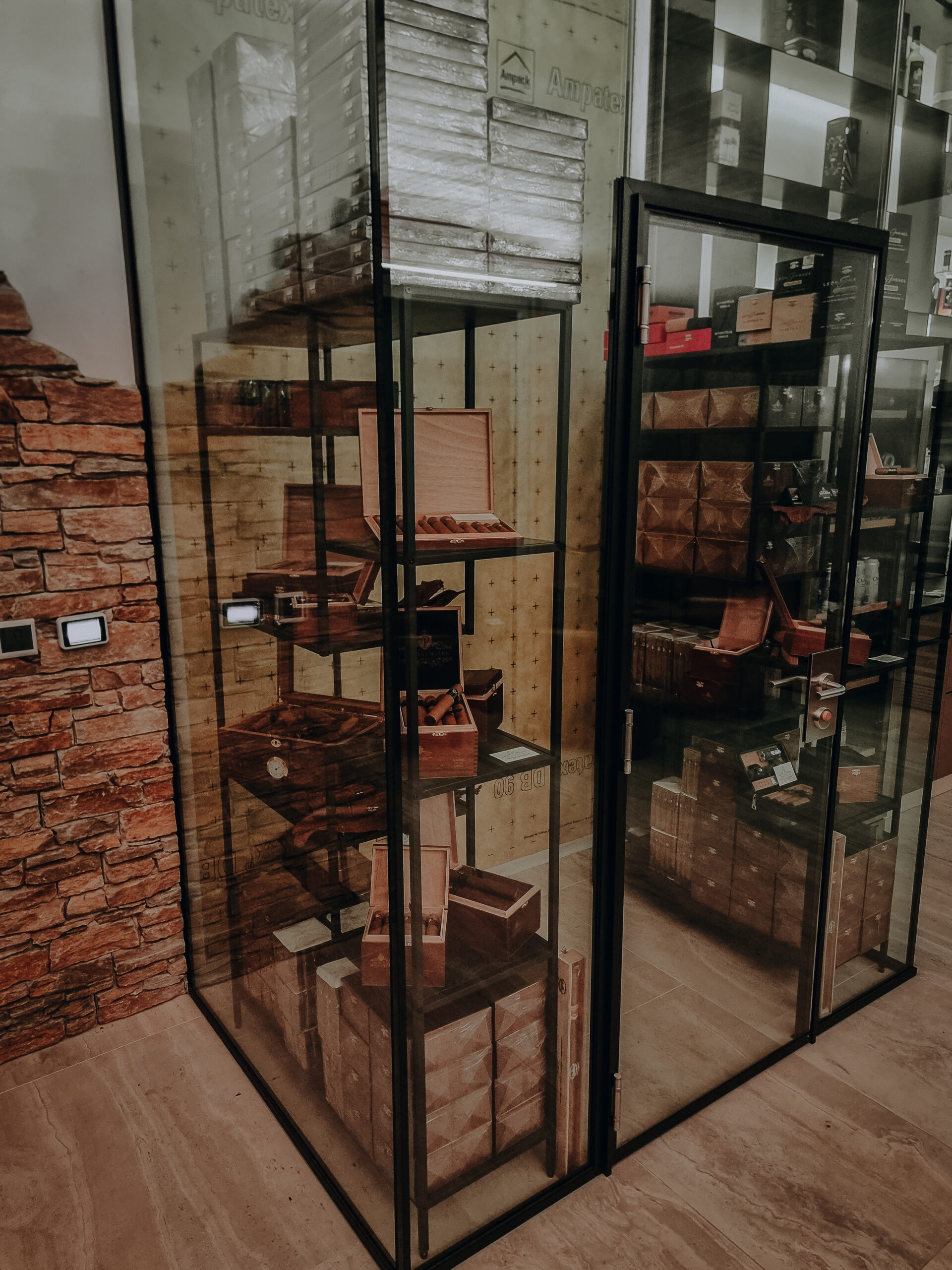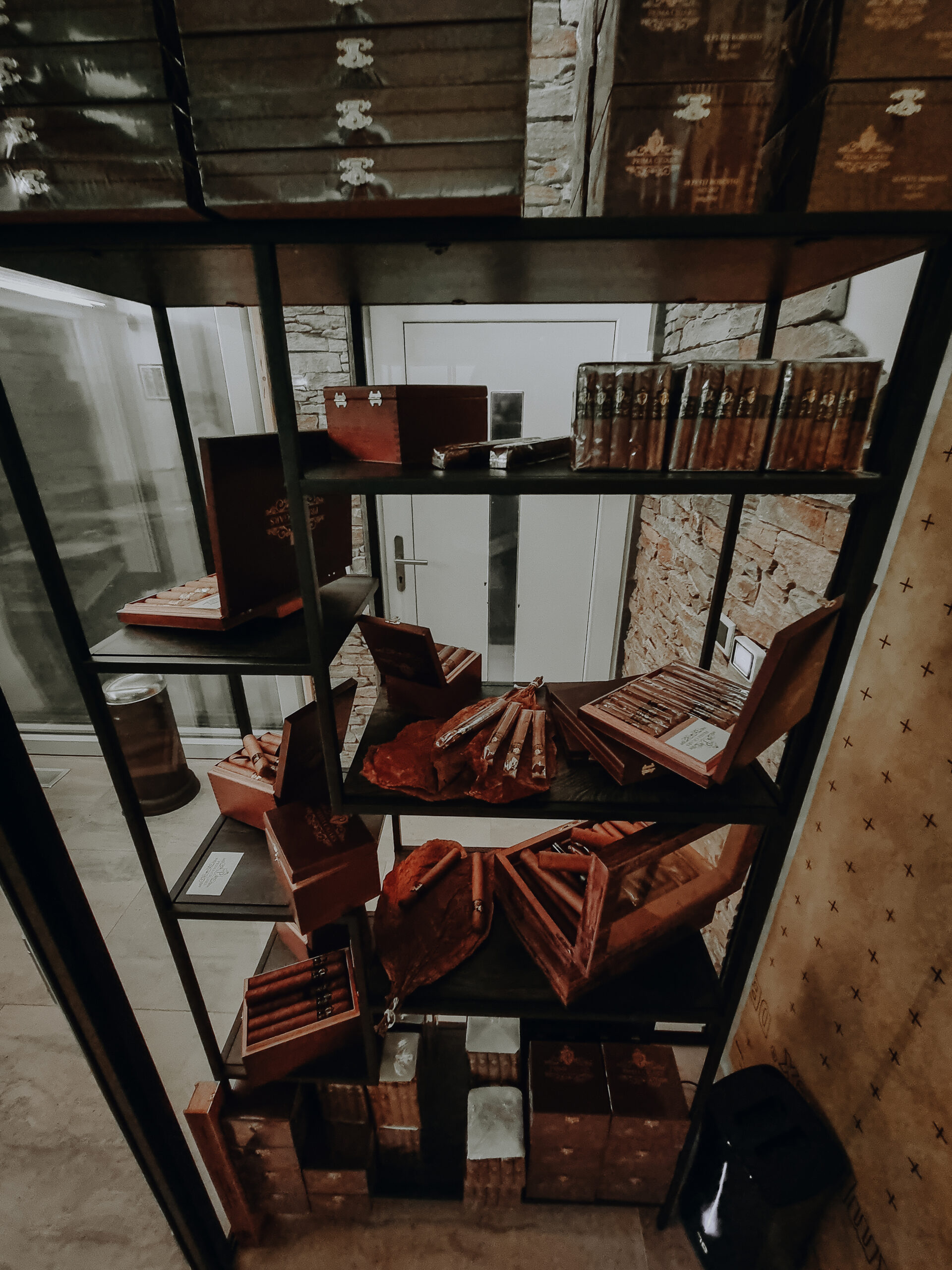 Richtig! Professionell aufbewahrte Zigarren, am besten im Lieblingsformat und mit einem vollen Aroma. Hierfür entstand ein eigens konzipierter 3.5 m hoher Humidor. Das spanische Zedernholz an der Rückwand des Herzstücks unserer Lounge, dem Humidor, ist in der Lage, das Zigarrenaroma voll zur Entfaltung zu bringen und dennoch nicht zu überdecken. Die Aromen des Tabaks und die des spanischen Zedernholzes haben eine sehr hohe Affinität und damit trägt das Holz zum Aromenerhalt der Zigarren im Humidor bei.
